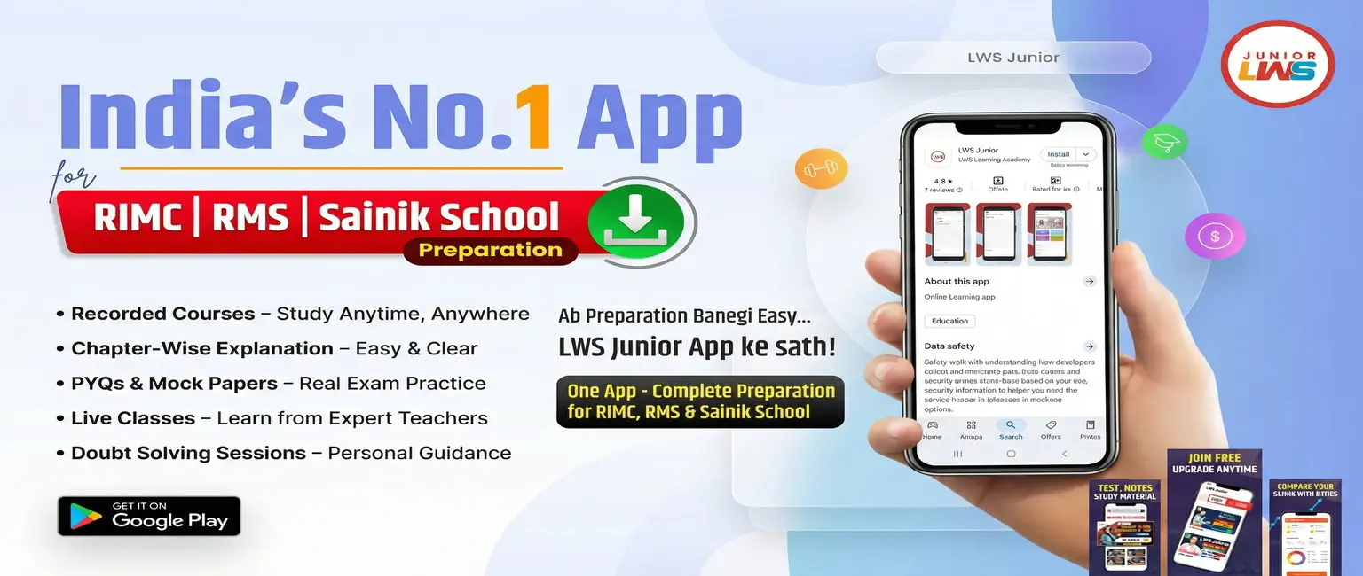 Unlock your child’s path to defence excellence with LWS Junior, a trusted name in early-stage defence entrance preparation. We offer a balanced blend of high-quality online learning and structured offline coaching, designed especially for young aspirants aiming for prestigious institutions like RIMC, Sainik Schools, and Rashtriya Military Schools (RMS).